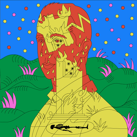 I knew I wanted to portray him with symbolism, something I greatly enjoyed doing for the Khruangbin 2021 Official Tour Poster and wanted to do more of.