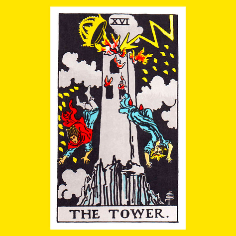 In my experiments I started with imagery of an explosion that I tried to generate with AI (sadly I lost those images), then researching imagery of things falling to pieces, which led to thinking of a tumbling house of cards, which led to the Tarot.
